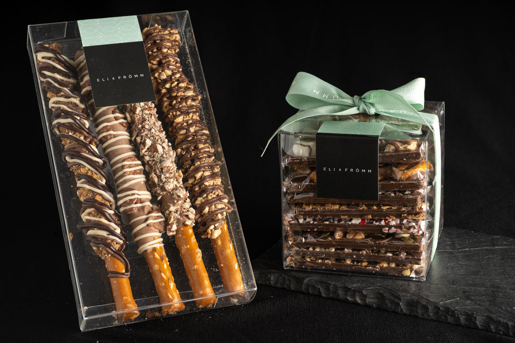 Belgian Chocolate Squares & Chocolate Dipped Pretzel Rods