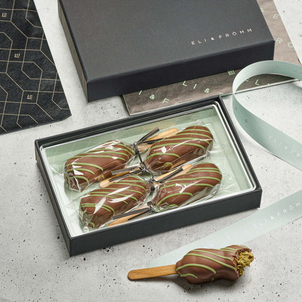 Sleek pistachio milk chocolate pops offering a taste of Dubai in every bite